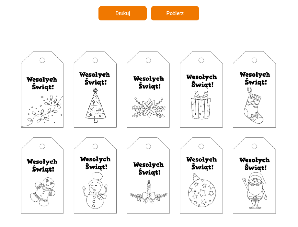 Drugi wariant to etykiety przeznaczone do druku na papierze zwykłym lub samoprzylepnym. Są wygodne w użyciu i pozwalają na estetyczne oznaczenie prezentu bez dodatkowych elementów, takich jak sznurek czy taśma.