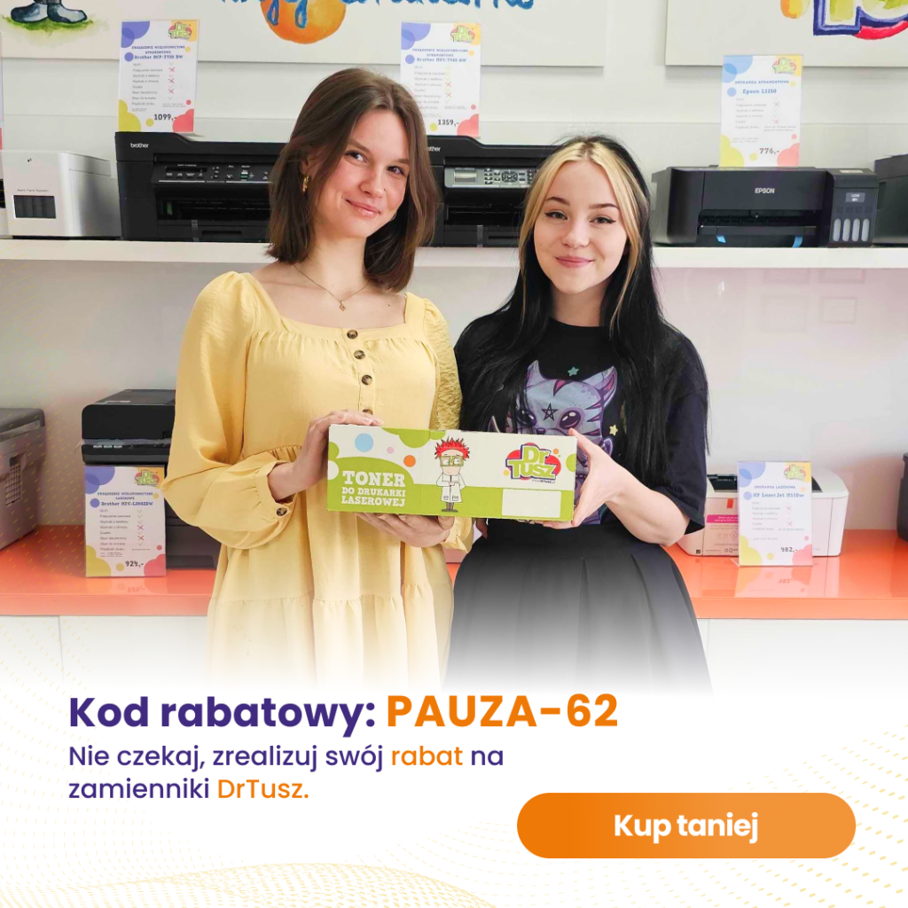 Jak to zrobić? Wybierz zamiennik tuszu lub tonera do swojej drukarki i kup go z kodem rabatowym i darmową dostawą: www.drtusz.pl/kupon_produkty.php?kupon=PAUZA-62