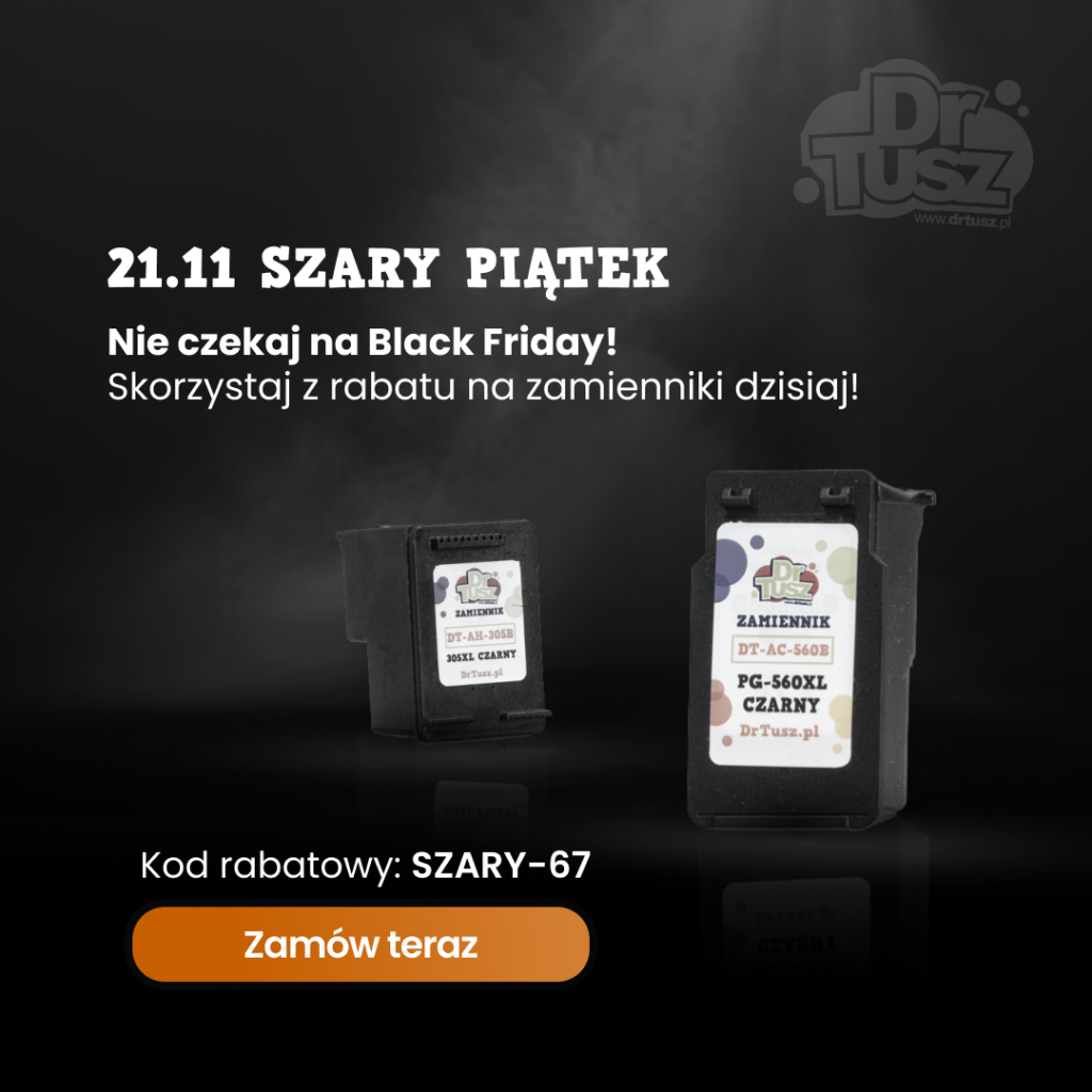 Twoja drukarka nie wie co to Black Friday i na pewno da o sobie znać jeśli zabraknie jej wkładów! Dlatego też przygotowaliśmy rabat na tusze i tonery DrTusz dla wszystkich tych, którzy chcą uzupełnić zapasy, a do tego zapłacić mniej! Skorzystaj z prawdziwej promocji i zamów z bezpłatną dostawą – bez żadnych ukrytych warunków: https://www.drtusz.pl/kupon_produkty.php?kupon=SZARY-67